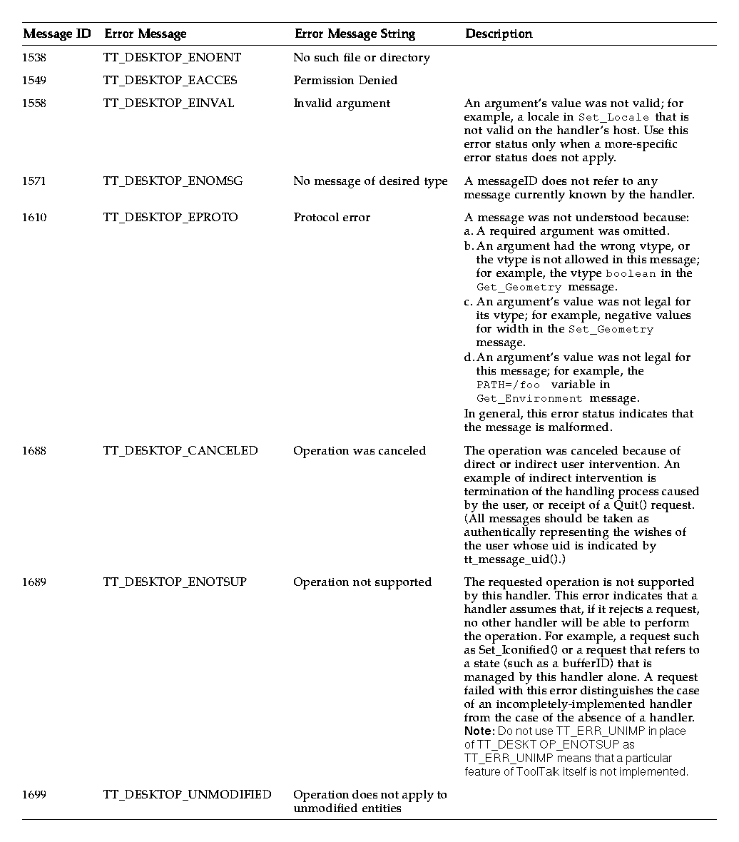 Table A-1 The ToolTalk Desktop Services Message Set